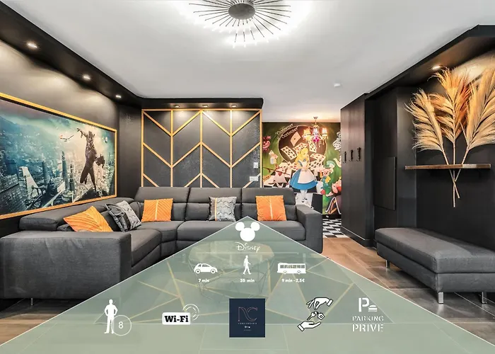 Disneyland-Dream 8 Pers,2 Parking, Wifi, Netflix dairesinde tam donanımlı mutfağın yanı sıra uydu kanallı düz ekran televizyon, duman detektörleri, çok kanallı televizyon içeren odalar bulunmaktadır. Tesis Disneyland Park'a 25 dakikalık ve Vallée Village Alışveriş Merkezi'a 13 dakikalık yürüme mesafesindedir.